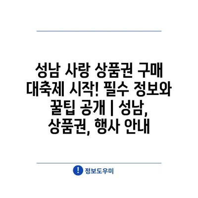 성남 사랑 상품권 구매 대축제 시작! 필수 정보와 꿀팁 공개 | 성남, 상품권, 행사 안내
