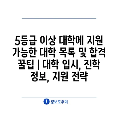 5등급 이상 대학에 지원 가능한 대학 목록 및 합격 꿀팁 | 대학 입시, 진학 정보, 지원 전략