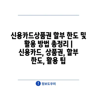 신용카드상품권 할부 한도 및 활용 방법 총정리 | 신용카드, 상품권, 할부 한도, 활용 팁