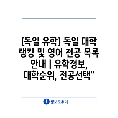 [독일 유학] 독일 대학 랭킹 및 영어 전공 목록 안내 | 유학정보, 대학순위, 전공선택”