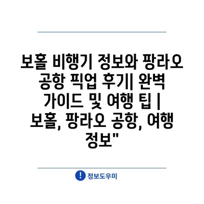 보홀 비행기 정보와 팡라오 공항 픽업 후기| 완벽 가이드 및 여행 팁 | 보홀, 팡라오 공항, 여행 정보”