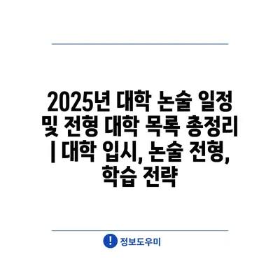 2025년 대학 논술 일정 및 전형 대학 목록 총정리 | 대학 입시, 논술 전형, 학습 전략