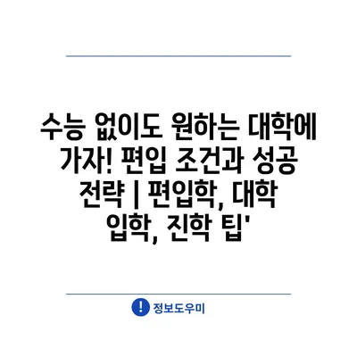 수능 없이도 원하는 대학에 가자! 편입 조건과 성공 전략 | 편입학, 대학 입학, 진학 팁’