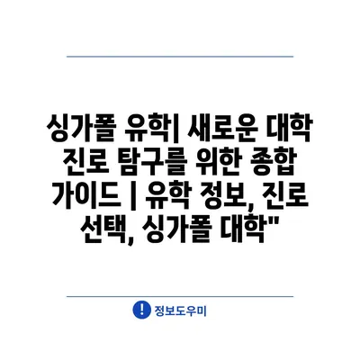 싱가폴 유학| 새로운 대학 진로 탐구를 위한 종합 가이드 | 유학 정보, 진로 선택, 싱가폴 대학”