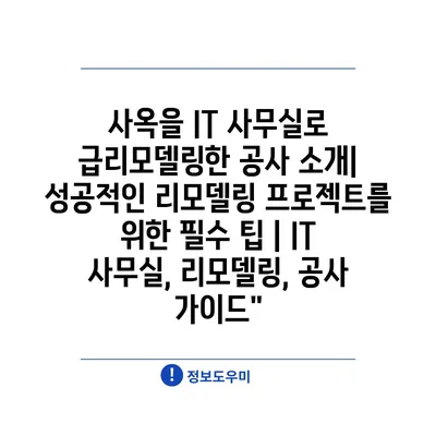 사옥을 IT 사무실로 급리모델링한 공사 소개| 성공적인 리모델링 프로젝트를 위한 필수 팁 | IT 사무실, 리모델링, 공사 가이드”
