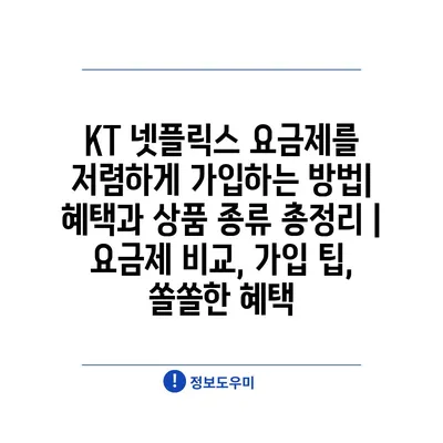 KT 넷플릭스 요금제를 저렴하게 가입하는 방법| 혜택과 상품 종류 총정리 | 요금제 비교, 가입 팁, 쏠쏠한 혜택