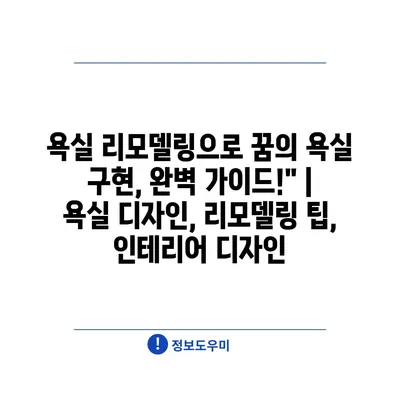 욕실 리모델링으로 꿈의 욕실 구현, 완벽 가이드!” | 욕실 디자인, 리모델링 팁, 인테리어 디자인