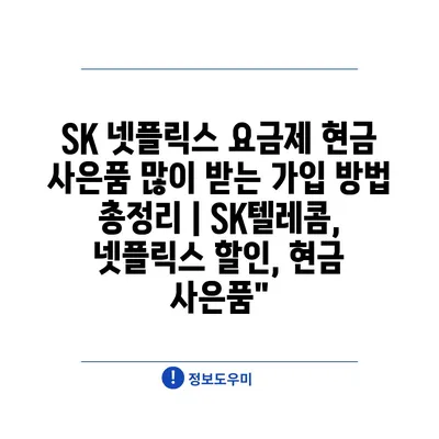 SK 넷플릭스 요금제 현금 사은품 많이 받는 가입 방법 총정리 | SK텔레콤, 넷플릭스 할인, 현금 사은품”