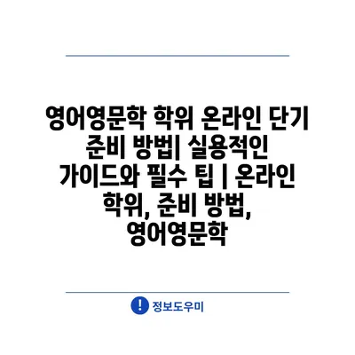 영어영문학 학위 온라인 단기 준비 방법| 실용적인 가이드와 필수 팁 | 온라인 학위, 준비 방법, 영어영문학