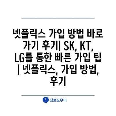 넷플릭스 가입 방법 바로 가기 후기| SK, KT, LG를 통한 빠른 가입 팁 | 넷플릭스, 가입 방법, 후기