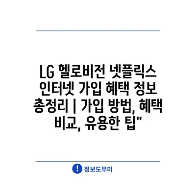 LG 헬로비전 넷플릭스 인터넷 가입 혜택 정보 총정리 | 가입 방법, 혜택 비교, 유용한 팁”