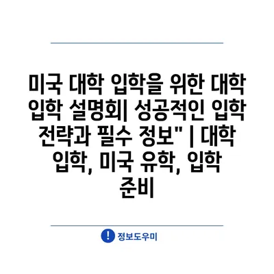 미국 대학 입학을 위한 대학 입학 설명회| 성공적인 입학 전략과 필수 정보” | 대학 입학, 미국 유학, 입학 준비