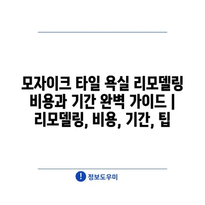 모자이크 타일 욕실 리모델링 비용과 기간 완벽 가이드 | 리모델링, 비용, 기간, 팁